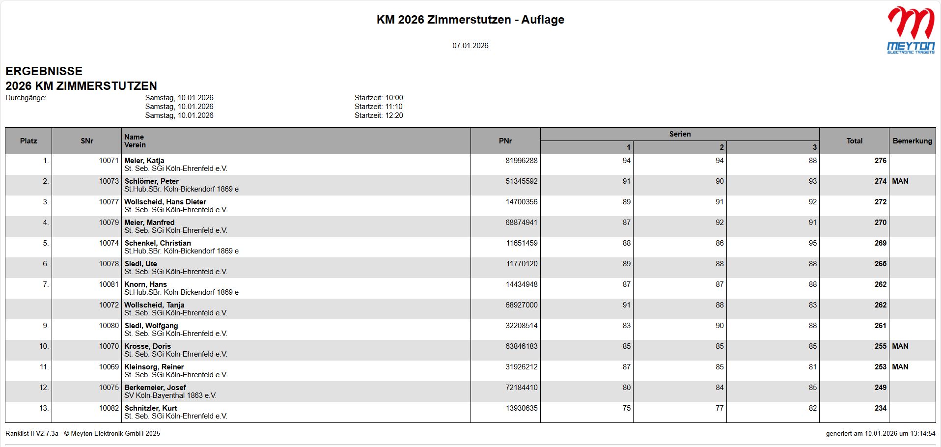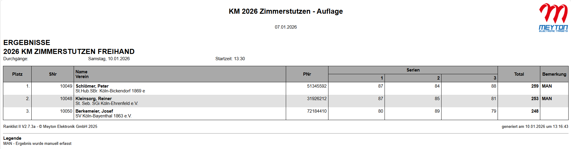 Ergebnisse KM 2025